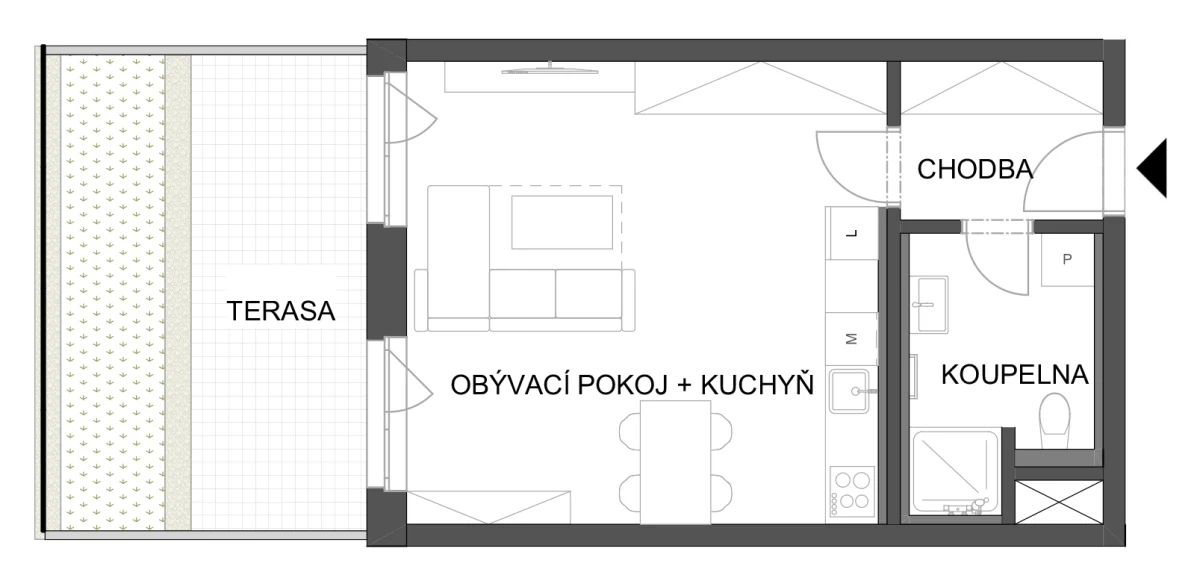 - Obývací pokoj + kuchyň 28.25 m2