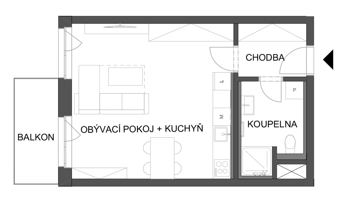 - Obývací pokoj + kuchyň 28.25 m2